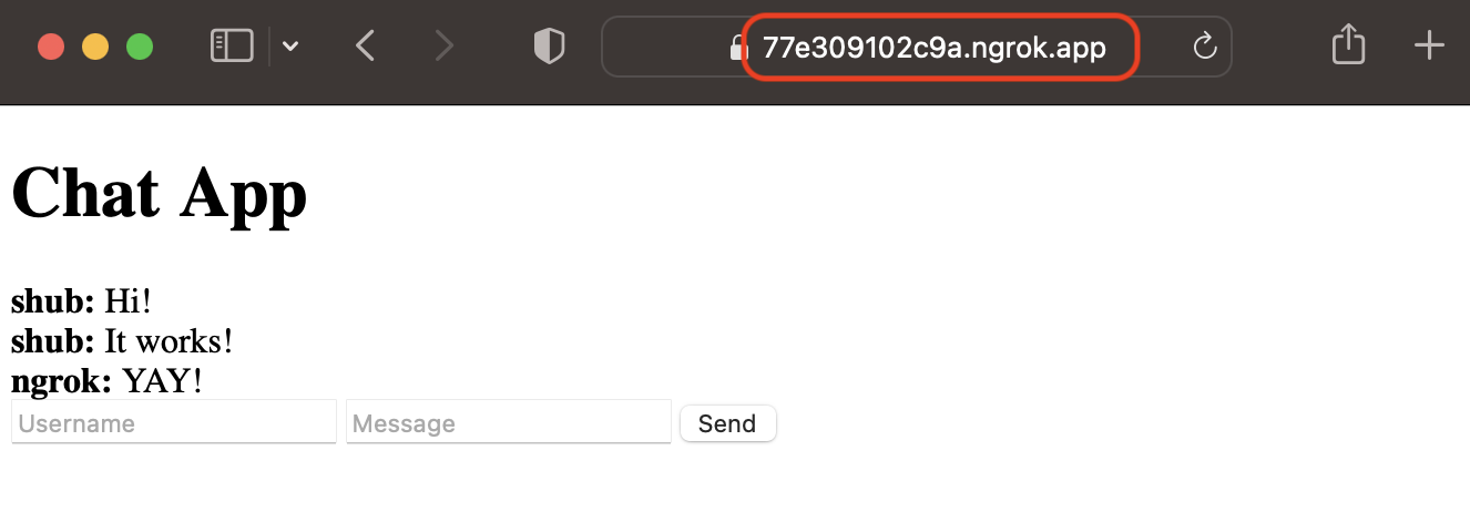 When your URL is generated, copy it and paste it into your browser. Voila! The chat app that was once confined to your local machine is now online. You can share this URL with your friends and family members, and even test it out on another device like your phone.