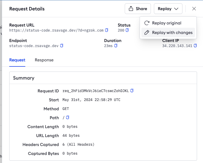 We are excited to announce that you can now customize and change the request before replaying it to your upstream service. This allows you to swap out headers, update credentials, or change values in the body to see how your service behaves.
