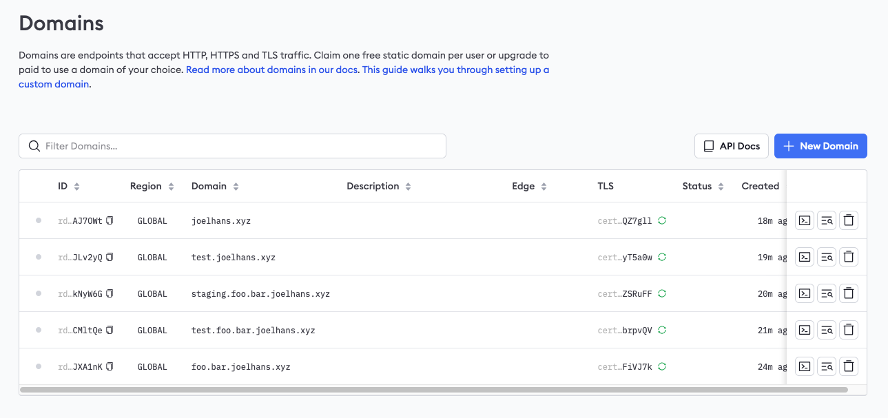 Last week, we launched a small UX change to our dashboard with big implications for how you configure DNS. If you bring your own domains to ngrok, and need to leverage nested subdomains, you'll appreciate this error-proof process for creating the appropriate target DNS records.