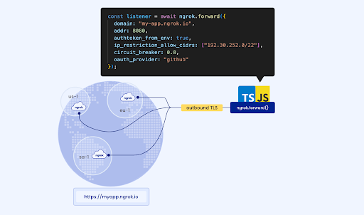 ngrok-javascript creates a secure and persistent outbound TLS connection to ngrok’s ingress-as-a-service platform.