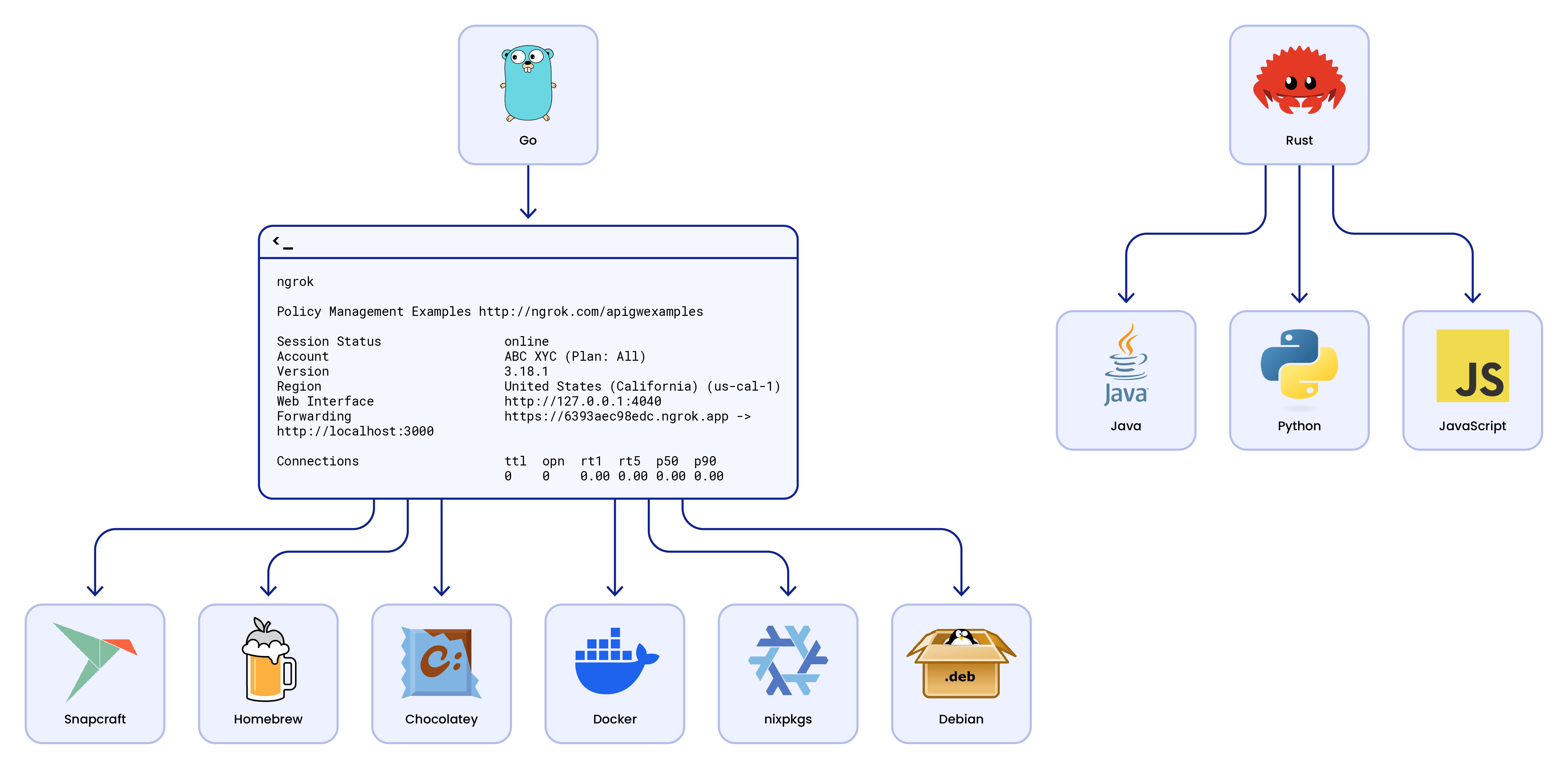 For instance, if we add a new phase to Traffic Policy, any agent or SDK can immediately use it. This is especially helpful in situations where you want or need to hold off upgrading your ngrok agent or SDK version. It’s also nice that you get a consistent Traffic Policy configuration experience no matter which form factor you choose.