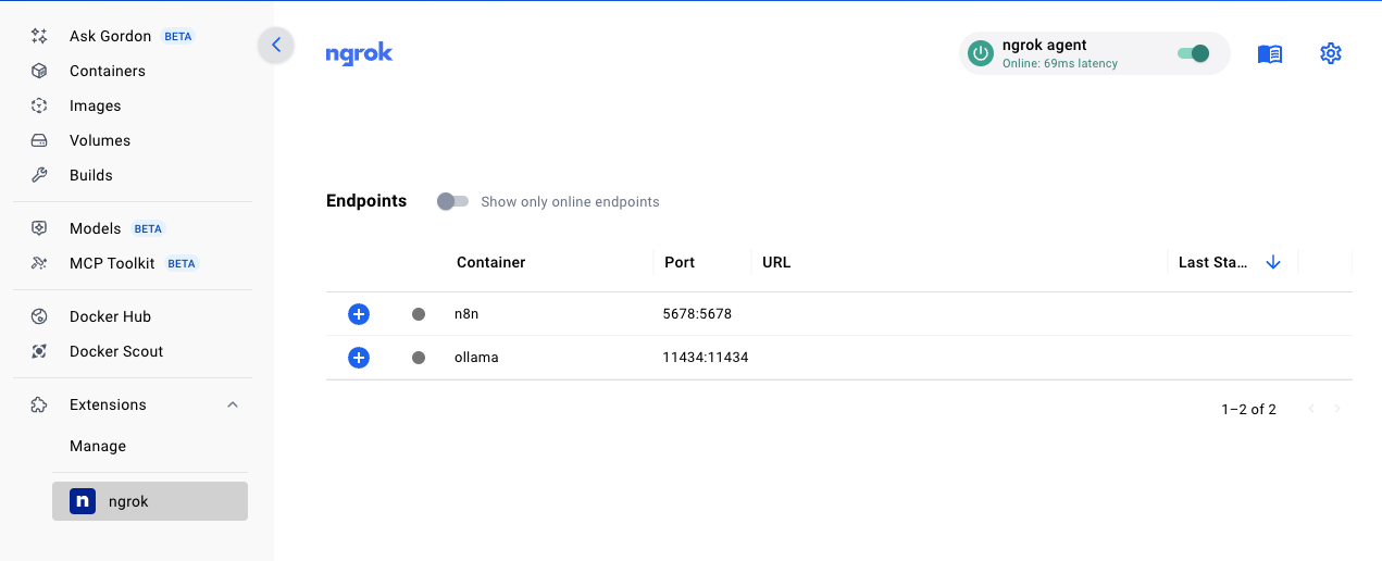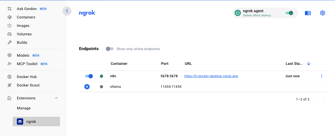 For everything else, there's ngrok's gateways and our new Docker Desktop extension, which makes sharing your AI workflow automations easy to configure (less waiting on IT) and security-first (no more getting scolded by the network folks).